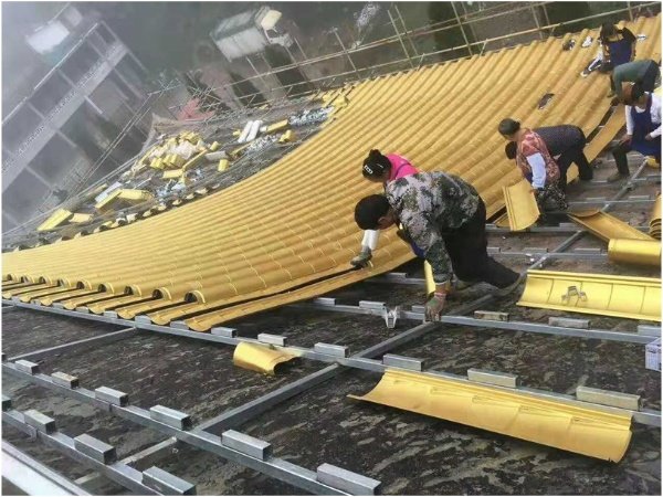 Henan Gusto trading company mainly produces and develops aluminum antique tiles, metal brackets, antique metal guardrail and other products. The use of modern advanced design concepts and technologies, with special alloy aluminum, copper as the main raw materials, through sheet metal, stamping, molding, surface treatment, multi-layer fluorocarbon spray and other processes refined.