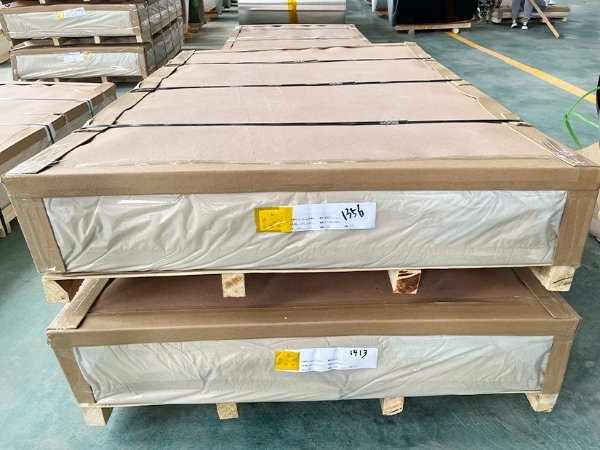 First, use plastic or kraft paper to wrap the aluminum plate, use fumigated wooden pallets or fumigation-free wooden pallets underneath, and finally fix it with steel strips.
